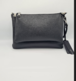 The handbag features two open compartments with an additional slide pocket in between, providing practical storage space for your essentials. This design allows for easy organization of your belongings while keeping them accessible. The inclusion of two fine leather detachable straps further enhances the versatility of the handbag. One strap can be used as a short shoulder or handbag strap, while the other features a silver-toned buckle that can be adjusted for shoulder or crossbody.
