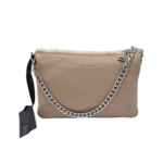 When you’re ready for a different look. Simply flip the handbag over to reveal its sleek leather side, allowing you to effortlessly transition from day to night with style and grace. The detachable chunky silver toned chain adds a touch of glamour, while the option to replace it with a long leather strap provides you with versatile styling options. Practicality meets luxury with this handbag, as it offers thoughtful storage solutions to keep your essentials organized. With three individual pockets, including an inside side zipped pocket and an open pocket, you’ll have ample space to carry your belongings with ease.